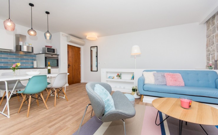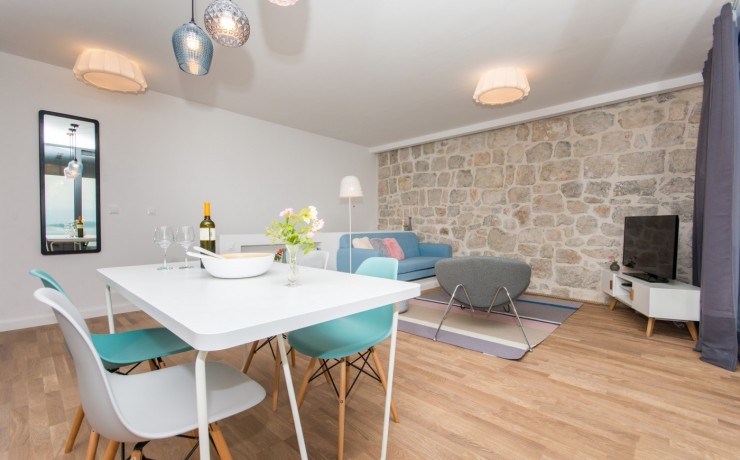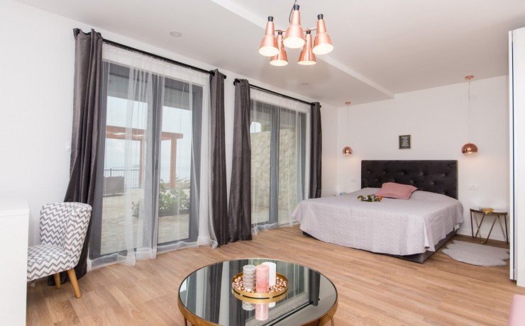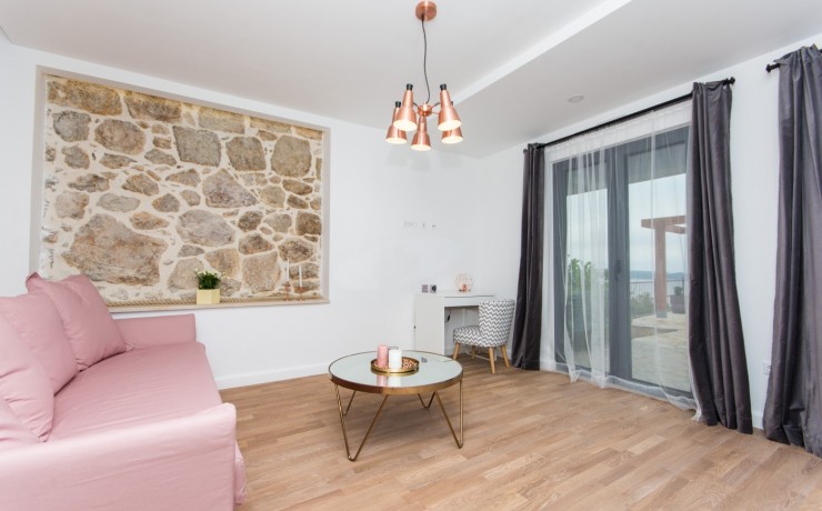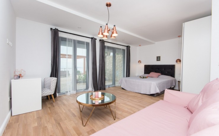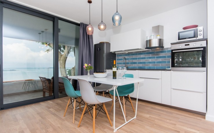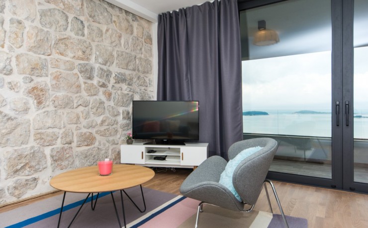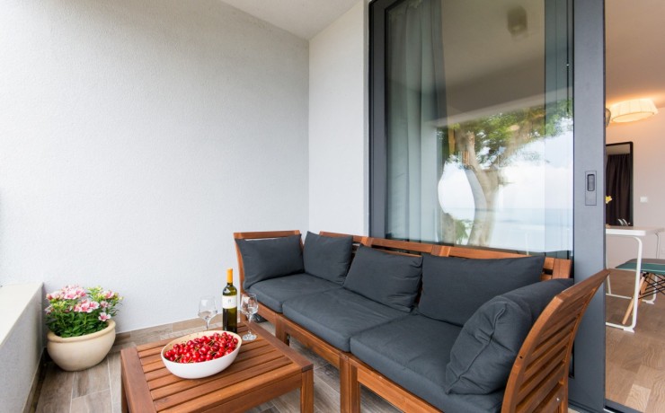 Located on the sea front in the most beautiful part of Dubrovnik Riviera and boast stunning views to the islands of Supetar, Bobara, and the bay of Cavtat. Modern newly built apartments overlooking the sea offers everything you need for a memorable holiday. The studio apartments are located on the upper level of the main villa with separate entrance, surrounded by hundreds of years old pine forest will offers you the most relaxing atmosphere. In front of the entrance to apartments is covered terrace, surrounded with forest, with barbecue and table for you to use. Apartment contains a bedroom with twin bed, en-suite bathroom, a kitchenette in the living room with additional bed(sofa) and balcony(terrace) overlooking the sea. The open plan kitchen and dining area offer sea views so you can enjoy the most romantic sunset while cooking your favourite meal or just sipping a cool bottle of wine. From the quiet, covered balcony you can enjoy in the moments of rest or watching a beautiful sunset.